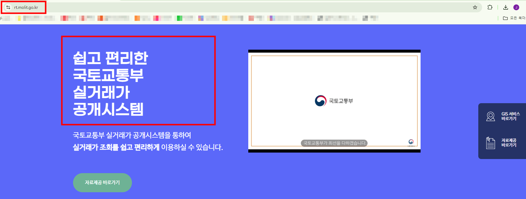 >>1단계: 국토부 부동산 실거래 정보 공개시스템 접속합니다.