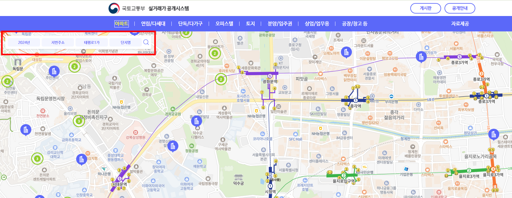 국토부 아파트 실거래가 조회시스템