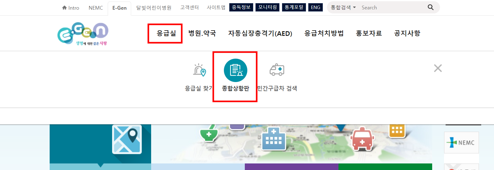 응급 상황에서 종합상황판을 활용하는 방법은 간단하고 직관적입니다. 다음은 이용 방법을 간단히 안내합니다.
