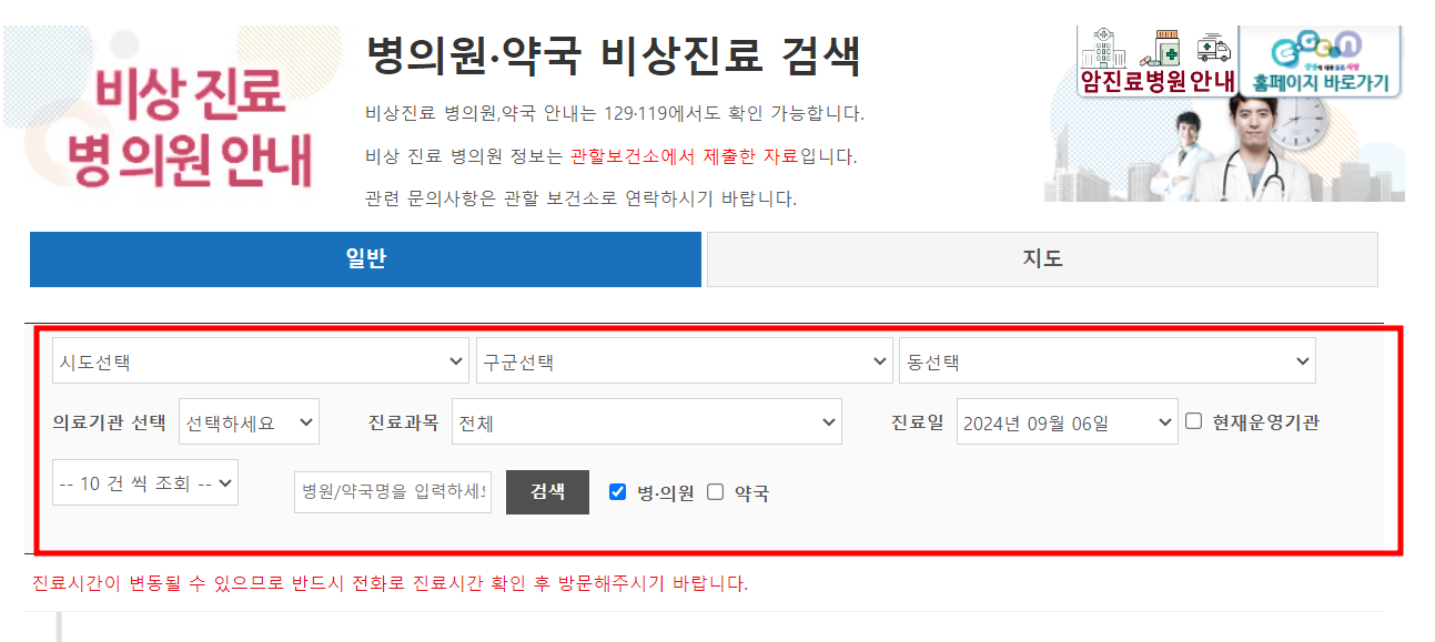 >>병의원·약국 비상진료 검색