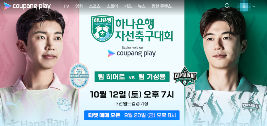 임영웅 VS 기성용 자선축구대회 "쿠팡플레이 모바일 앱에서 예매"하세요!