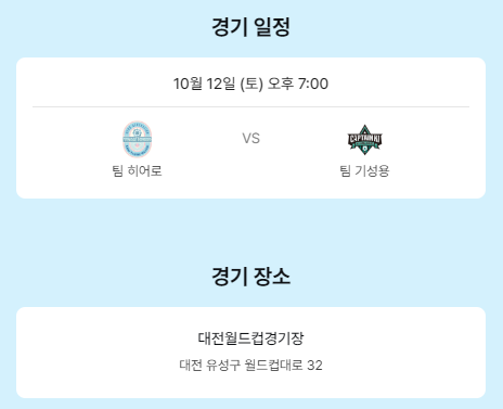 이번 자선축구대회는 연예계에서 축구 실력으로 주목받고 있는 임영웅이 이끄는 팀 히어로와 한국 축구의 전설적인 선수인 기성용이 이끄는 팀 기성용이 맞붙는 경기입니다. 경기는 10월 12일 금요일 오후 7시에 대전월드컵경기장에서 진행됩니다.