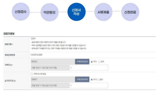 본인인증과 약관동의까지 마쳤다면 신청서를 작성합니다.