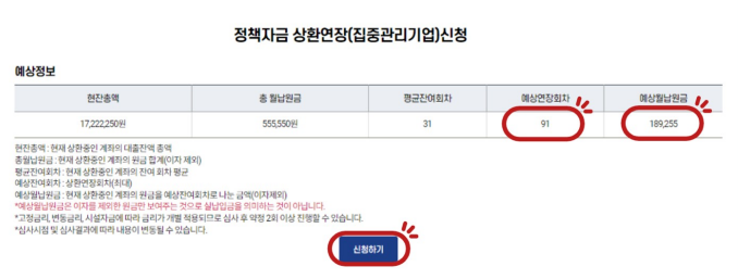 >>신청 대상인 경우 지원구분-상환연장을 확인합니다.