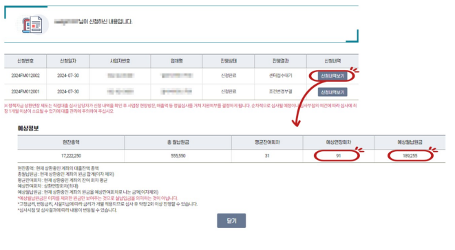 적용개월, (예상)월 상황 원금 규모를 확인합니다.